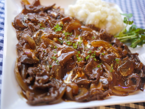 薄切りの牛肉をデミグラスソースで煮込んだのがハッシュドビーフ。煮込み料理ですが、お肉は薄切り肉なので20分ほどで出来ちゃう意外とお手軽な料理です。缶詰等市販のデミグラスソースを使うレシピですが、かなり本格的な味に仕上がります。付け合わせはマッシュポテトがおすすめ。